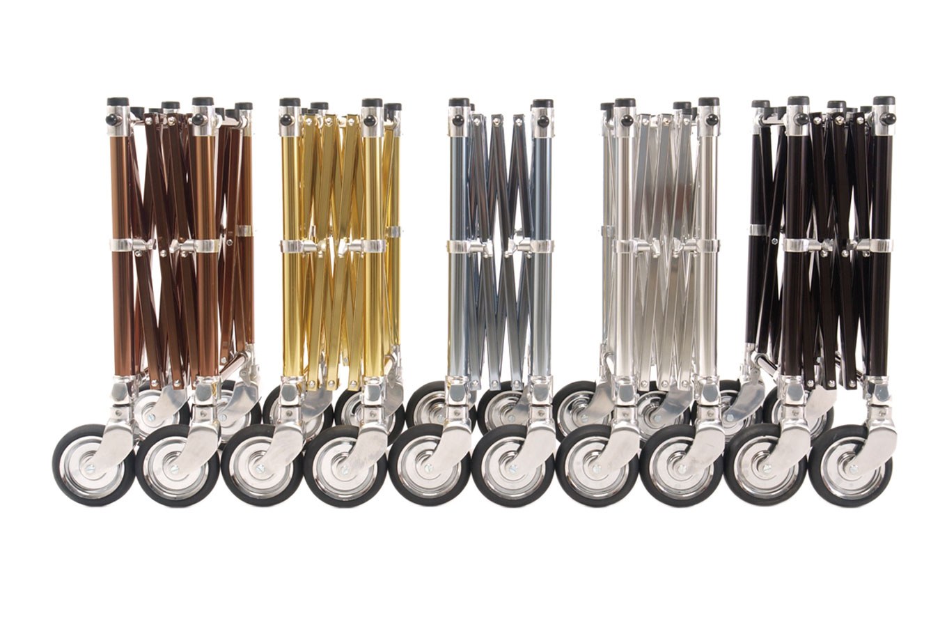 15 cm gummihjul rullar smidigt och tyst över mattor och trösklar och säkerställer värdig hantering. När vagnen flyttas utan kista gör ett inbyggt handtag det enkelt att skjuta, dra eller bära den.