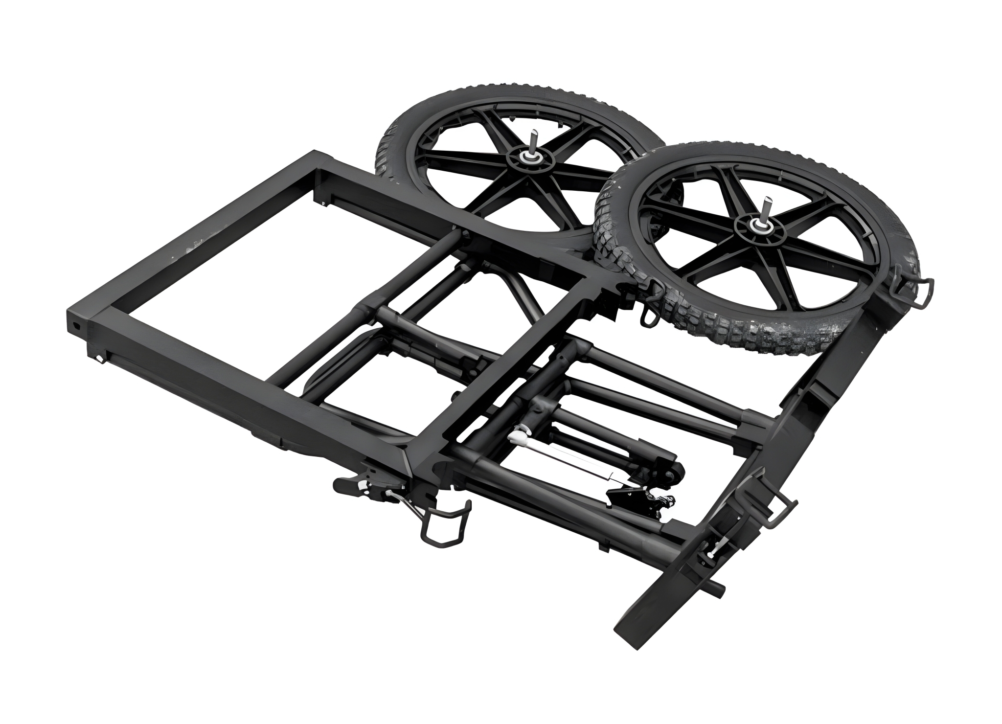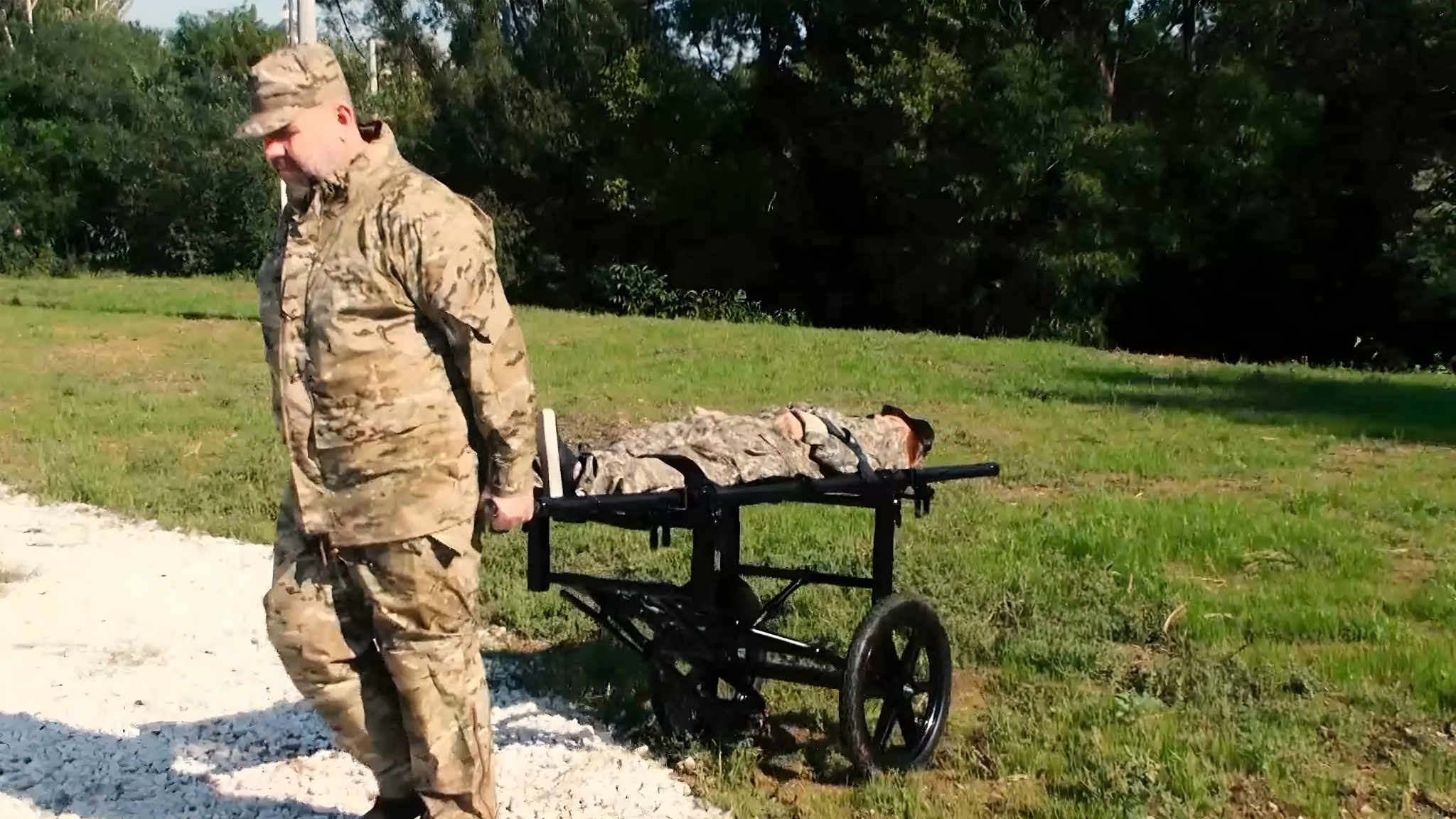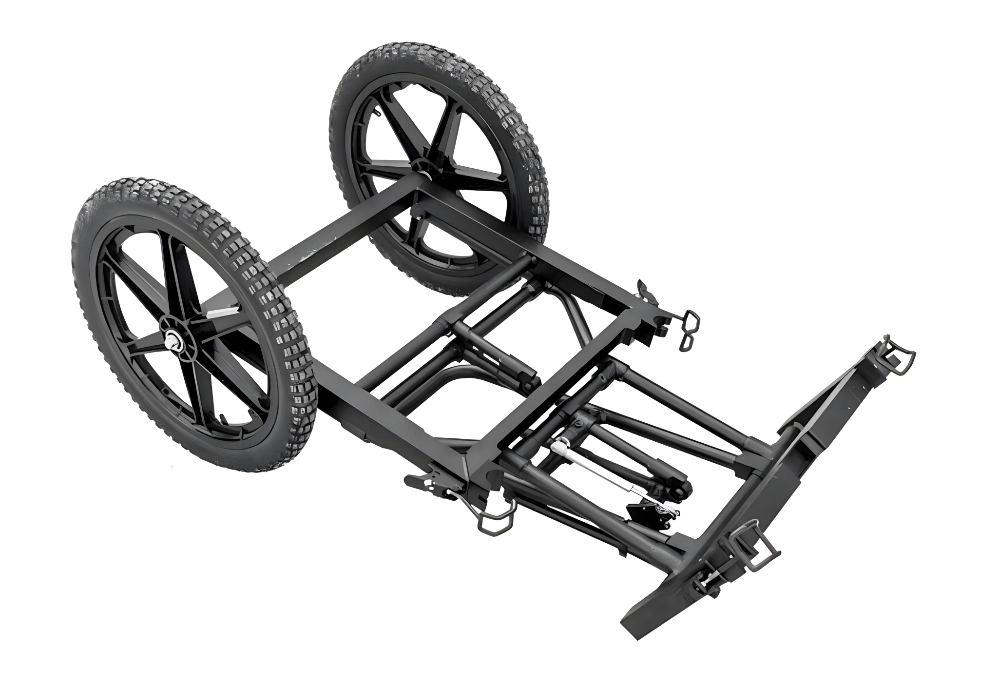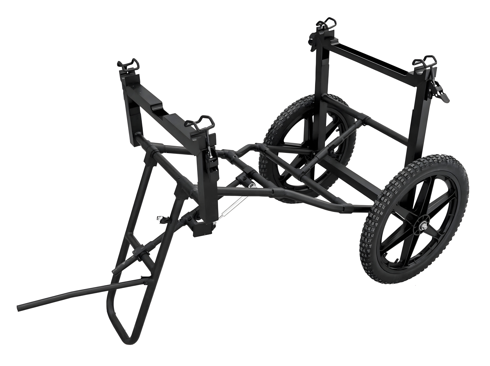 Hjulvagnen har en slitstark och hopfällbar aluminiumram som kombinerar hög hållfasthet med låg vikt. Detta gör den enkel att transportera, snabbt sätta i bruk och förvara. Den kan snabbt fästas på kompatibla bårar, vilket gör att en eller två operatörer effektivt kan transportera skadade under fältförhållanden. De stora terränghjulen ger hög stabilitet och god manövrerbarhet på ojämna underlag som sand, snö, grus och grov terräng.