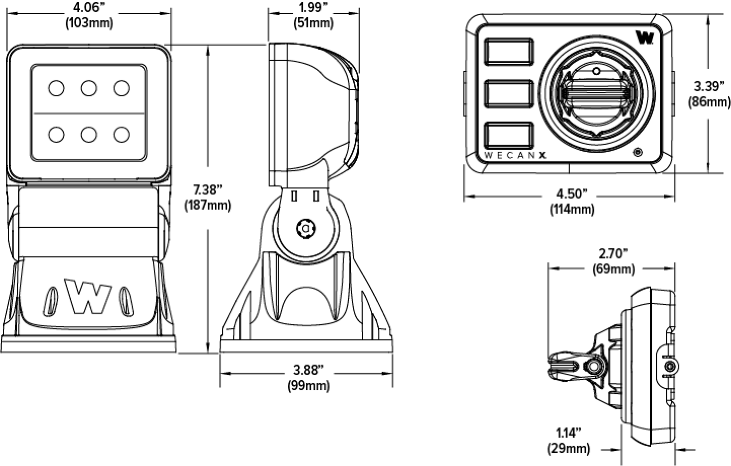 Den kompakta konstruktionen är utformad för att minimera döda vinklar vid montering på fordon. Strålkastaren styrs via en extern kontrollenhet istället för ett traditionellt invändigt handtag, vilket ökar både säkerhet och flexibilitet. Systemet kan integreras med Whelen kontrollsystem som CenCom Core™ och WeCanX™, eller användas som en fristående lösning.