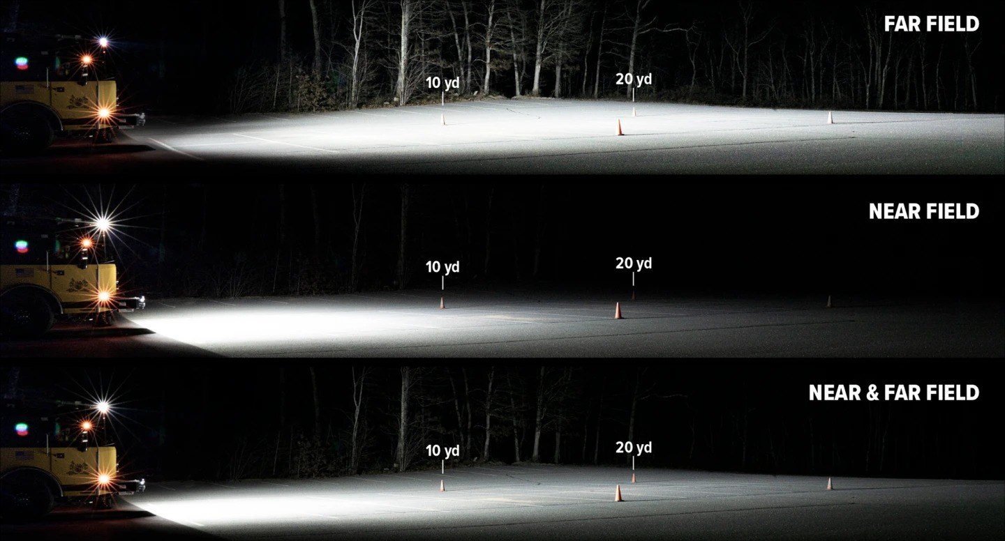 Whelen Field Series® sätter en ny standard för arbetsbelysning på utryckningsfordon. Utvecklad i nära samarbete med amerikanska brand- och räddningsstyrkor, levererar den enastående ljusstyrka tack vare Dynamic Beam Technology – den enda tekniken som samtidigt belyser både när- och fjärrfält för full situationsmedvetenhet.