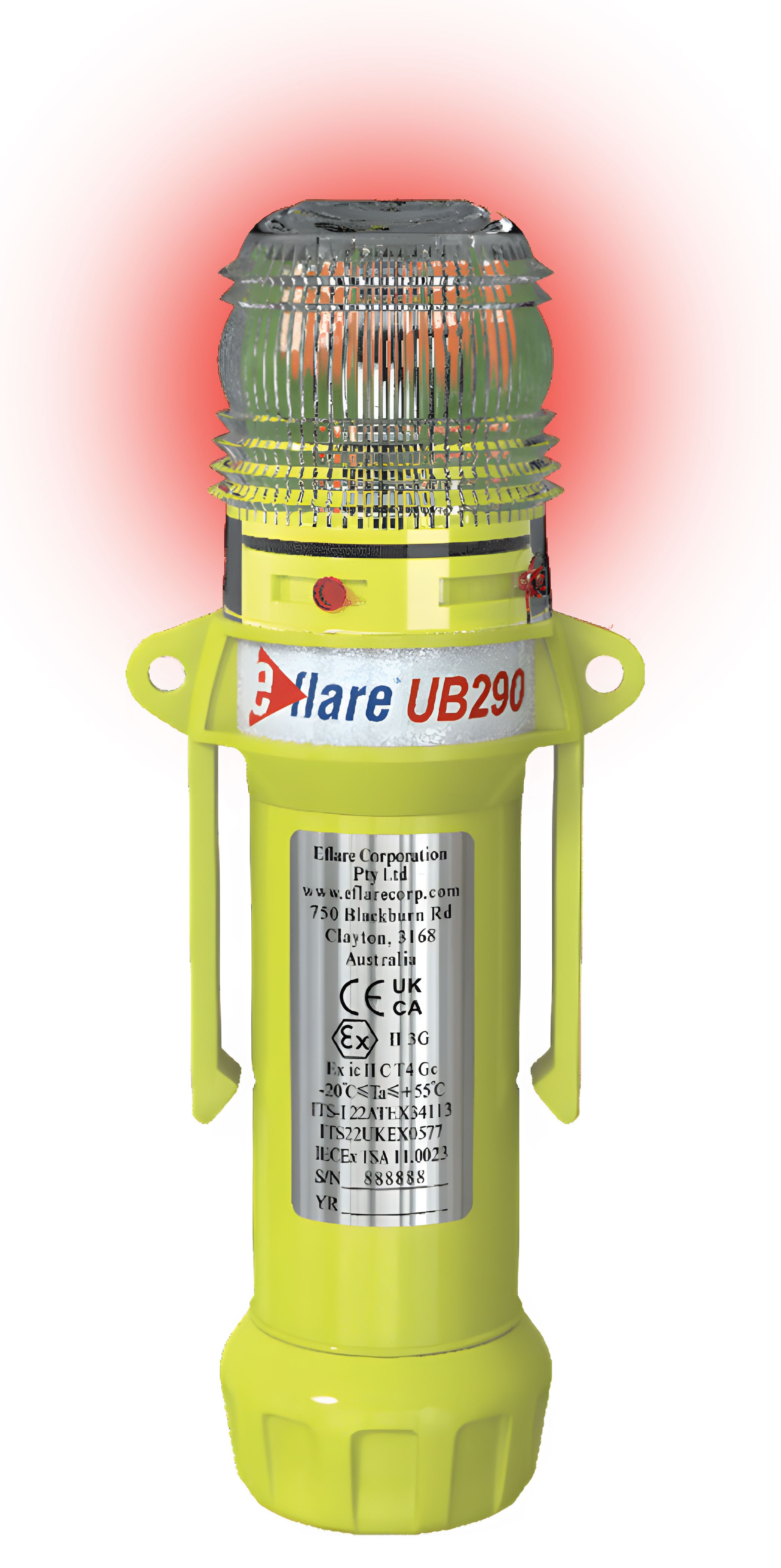 Varselljuset kan användas med både blinkande och fast ljus och är konstruerat för krävande förhållanden. Det slitstarka fluorplast-höljet med reflekterande band förbättrar synligheten både dag och natt. Med en driftstid på över 20 timmar med fyra standard AA-batterier (ingår ej) är UB290 ett tillförlitligt val för längre insatser.